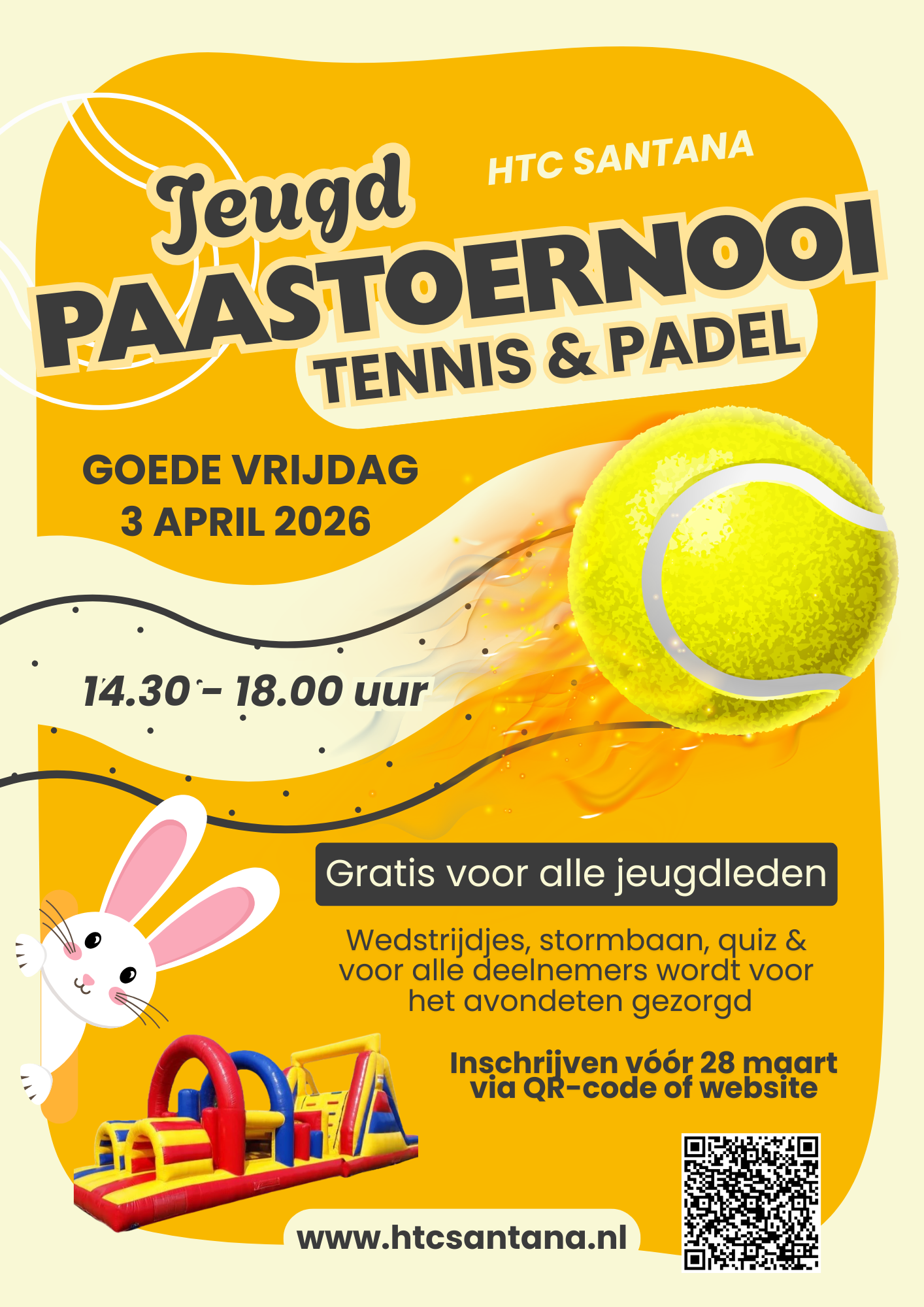 Na de geslaagde editie van vorig jaar presenteren we je op vrijdag 3 april 2026 (Goede vrijdag) het Tennis & Padel Paastoernooi. Meer weten? Zie de flyer hieronder!